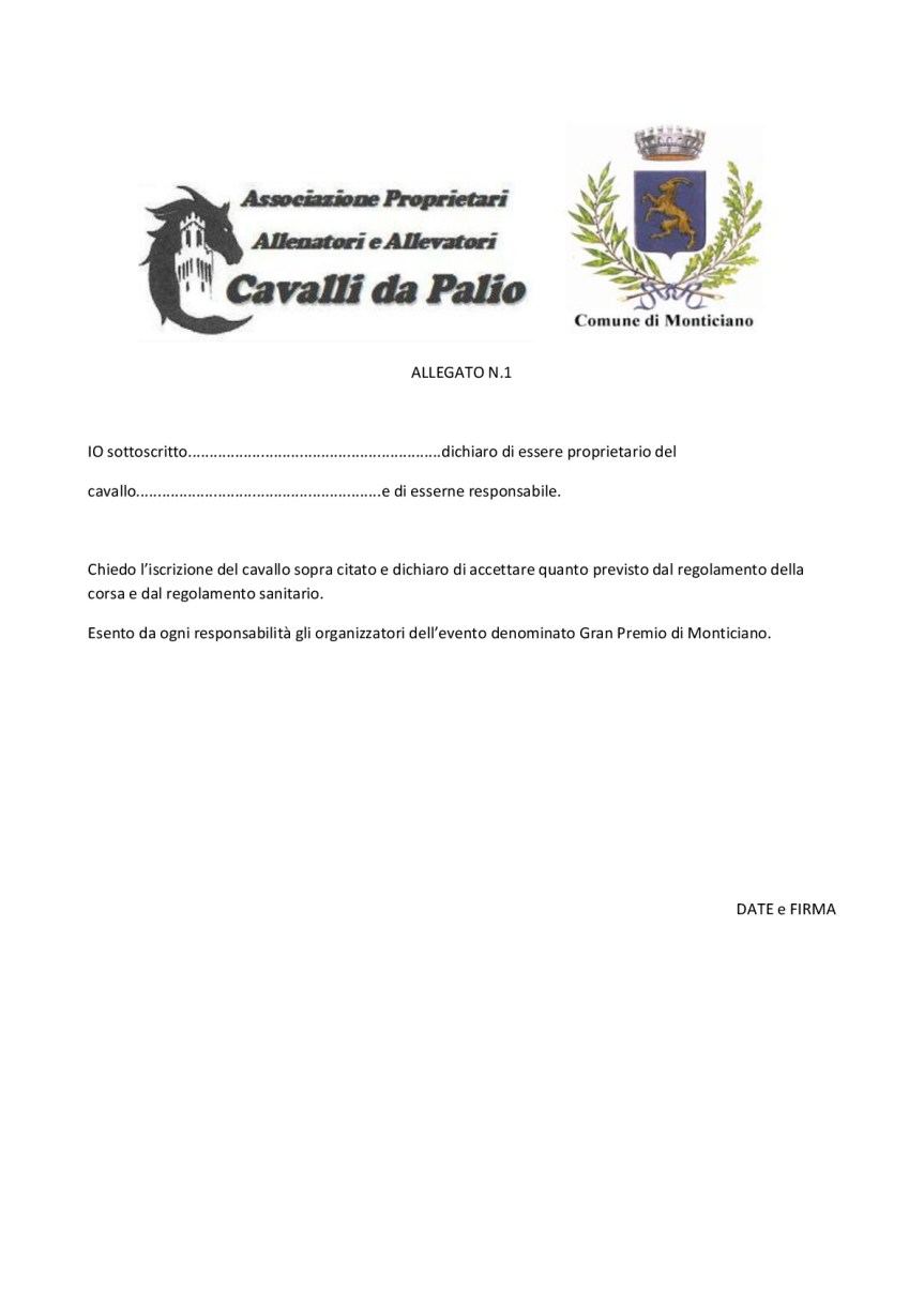 Qua sotto vi propongo la modulistica per iscrivere i cavalli al “Gran Premio dei Rioni di Monticiano”