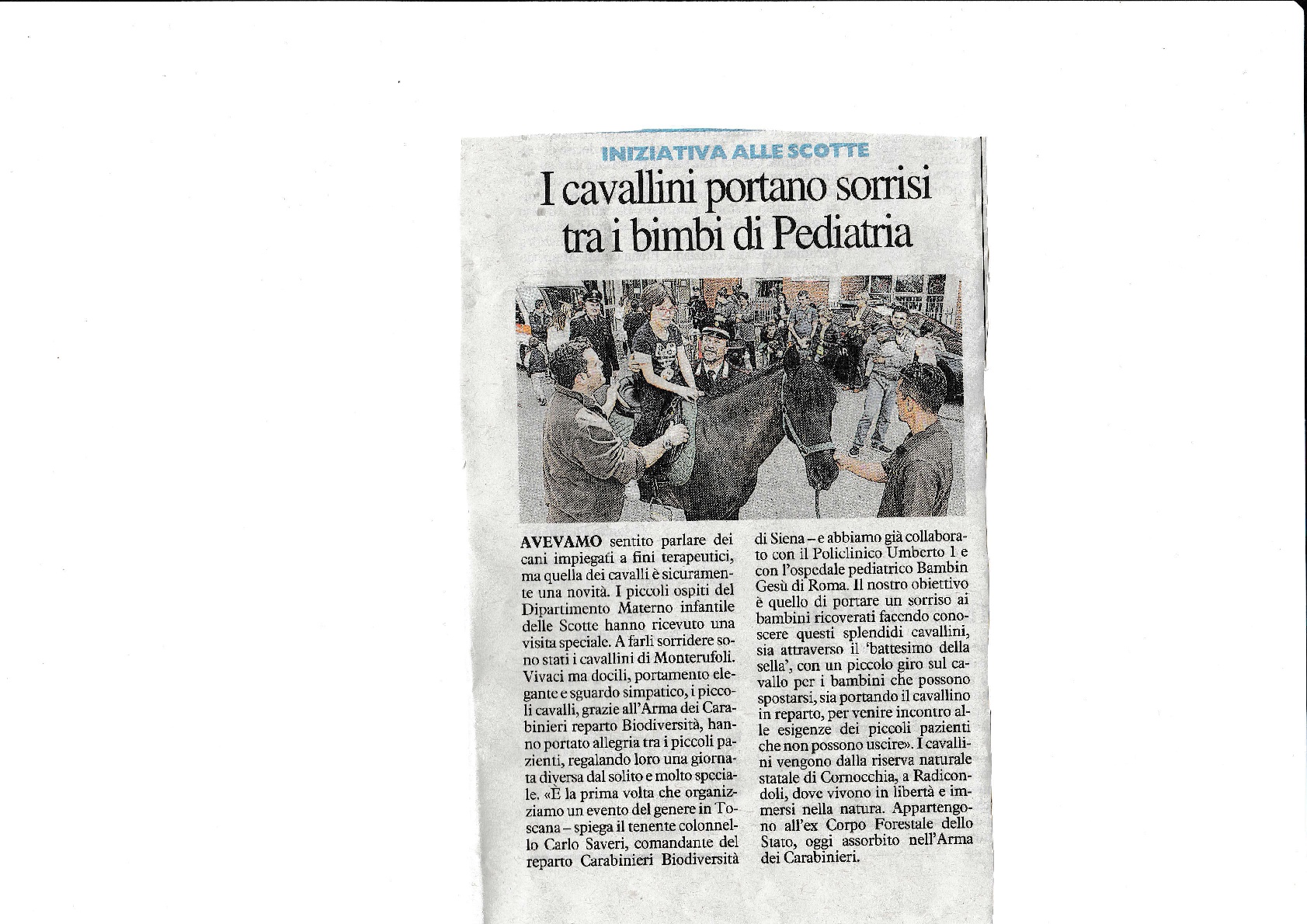 Siena, Ospedale le Scotte: ” I cavallini” portano sorrisi tra i bimbi di Pediatria”