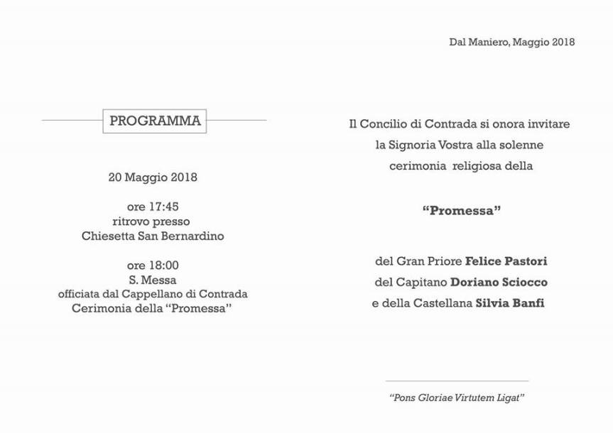 Legnano, Contrada San Bernardino: 20/05 “Cena della Promessa e delle Medaglie” La Contrada San Bernadino ci comunica che il giorno 20/05 ci sarà : ore 18 “Cerimonia della Promessa” ore 20:30 “Cena della Promessa e delle Medaglie” presso il Maniero Condividi sul web: Fai clic per condividere su Facebook (Si apre in una nuova finestra) Facebook Fai clic per condividere su WhatsApp (Si apre in una nuova finestra) WhatsApp Fai clic per condividere su Telegram (Si apre in una nuova finestra) Telegram Fai clic per condividere su X (Si apre in una nuova finestra) X Fai clic qui per stampare (Si apre in una nuova finestra) Stampa Fai clic per inviare un link a un amico via e-mail (Si apre in una nuova finestra) E-mail Mi piace Caricamento... Correlati