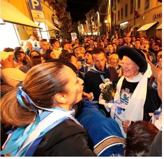 È questa la formula del battesimo contradaiolo di una delle dodici contrade di Fucecchio. Ma cosa si intende per “battesimo contradaiolo”? Nella vita di un non contradaiolo, al massimo, c’è il battesimo religioso, quello cattolico. Non c’è spazio per questi riti laici, che però nelle contrade hanno un grande valore, perché praticamente sigillano a vita il rapporto tra la persona e la sua contrada. E infatti, nel Palio non si dice “Io tifo la contrada x” ma “io sono della contrada x”, a dimostrazione di un legame viscerale e profondo. Si è della contrada, si vince e si perde assieme ad essa, si piange e si ride per quest’ultima.