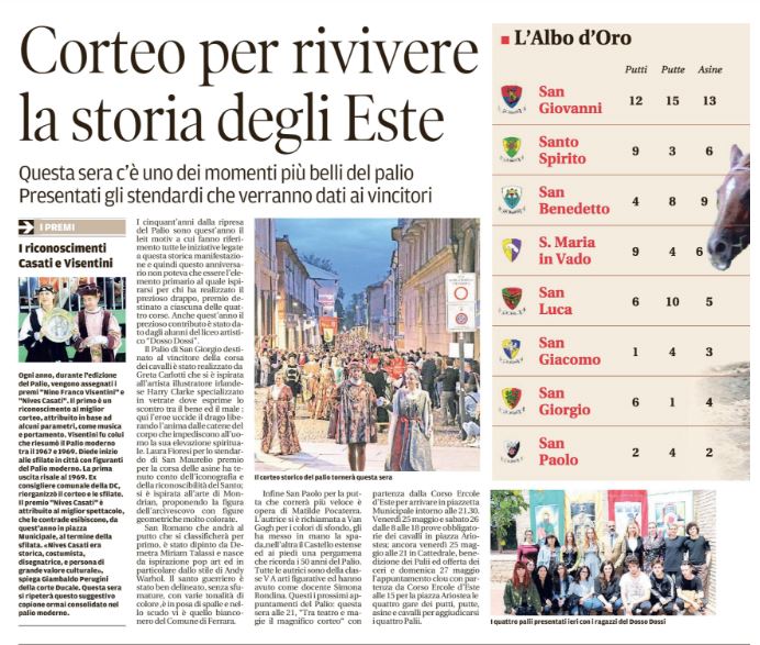 Palio di Ferrara: Speciale de “La Nuova Ferrara” sul 50esimo del Palio Vi proponiamo sotto lo speciale fatto da “La Nuova Ferrara“, dedicato al 50esimo del Palio di Ferrara. Condividi sul web: Fai clic per condividere su Facebook (Si apre in una nuova finestra) Facebook Fai clic per condividere su WhatsApp (Si apre in una nuova finestra) WhatsApp Fai clic per condividere su Telegram (Si apre in una nuova finestra) Telegram Fai clic per condividere su X (Si apre in una nuova finestra) X Fai clic qui per stampare (Si apre in una nuova finestra) Stampa Fai clic per inviare un link a un amico via e-mail (Si apre in una nuova finestra) E-mail Mi piace Caricamento... Correlati