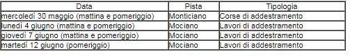 A causa delle avverse condizioni meteorologiche che hanno condizionato il regolare svolgimento delle programmate giornate di addestramento, la Commissione Tecnica Comunale ha predisposto un nuovo calendario: