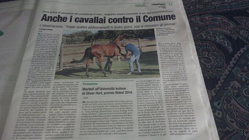 Qua sotto vi posto l’articolo del Correre di Siena di Oggi 25/05: