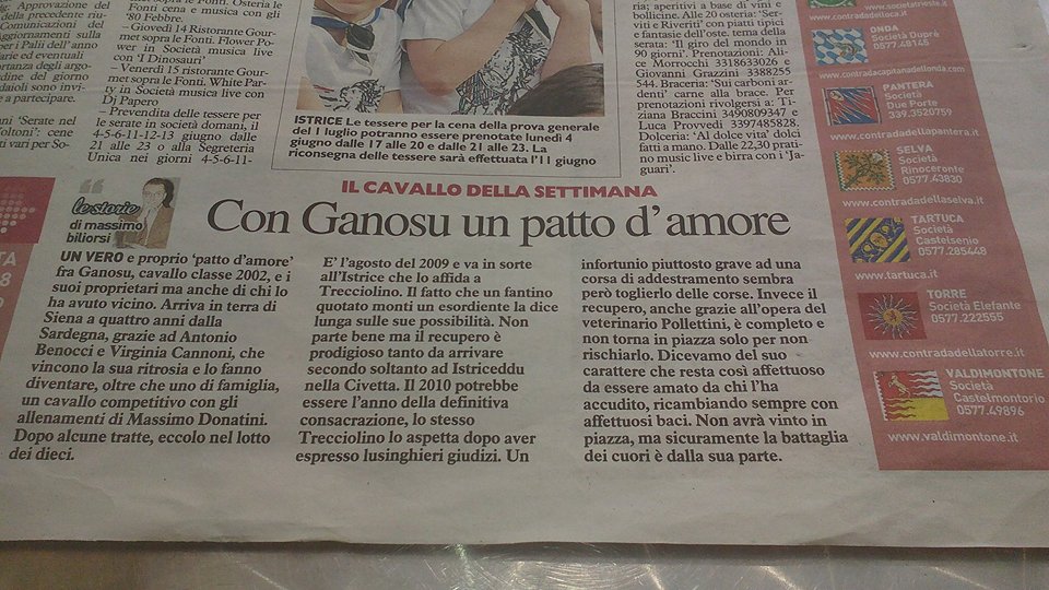 Palio di Siena, Il Cavallo della Settimana: Ganosu Vi riporto l’articolo apparso sull’edizione odierna, 01/06, del quotidiano “La Nazione” Fonte: La Nazione Condividi sul web: Fai clic per condividere su Facebook (Si apre in una nuova finestra) Facebook Fai clic per condividere su WhatsApp (Si apre in una nuova finestra) WhatsApp Fai clic per condividere su Telegram (Si apre in una nuova finestra) Telegram Fai clic per condividere su X (Si apre in una nuova finestra) X Fai clic qui per stampare (Si apre in una nuova finestra) Stampa Fai clic per inviare un link a un amico via e-mail (Si apre in una nuova finestra) E-mail Mi piace Caricamento... Correlati