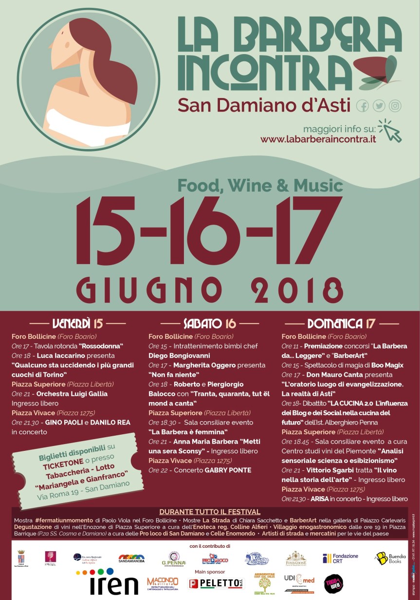 Palio di Asti, Comune di San Damiano d’Asti: 15-16-17/06 ” La Barbera Incontra 2018″ Il 15, 16, 17 giugno la quarta edizione del festival agrimusicalletterario, con concerti, wine & food Programma: Condividi sul web: Fai clic per condividere su Facebook (Si apre in una nuova finestra) Facebook Fai clic per condividere su WhatsApp (Si apre in una nuova finestra) WhatsApp Fai clic per condividere su Telegram (Si apre in una nuova finestra) Telegram Fai clic per condividere su X (Si apre in una nuova finestra) X Fai clic qui per stampare (Si apre in una nuova finestra) Stampa Fai clic per inviare un link a un amico via e-mail (Si apre in una nuova finestra) E-mail Mi piace Caricamento... Correlati