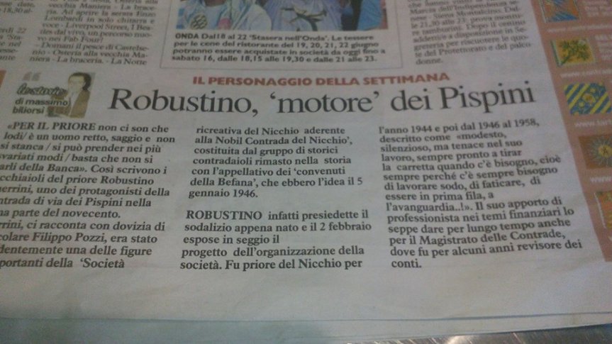 Palio di Siena, Il Personaggio della Settimana: Robustino “Motore” dei Pispini