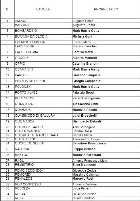 Palio di Siena: I Cavalli Iscritti alla Previsitaper il Palio del 02/07/2018
