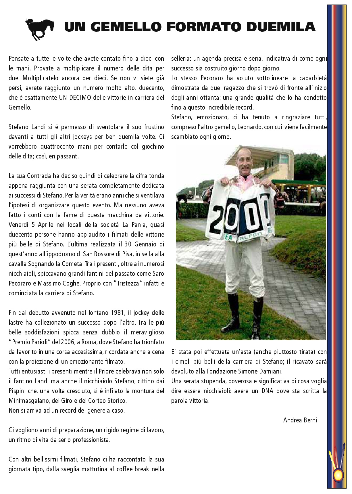 Siena, Contrada del Nicchio: “Un Gemello Formato Duemila” tratto da “La Spannocchia” Maggio 2014