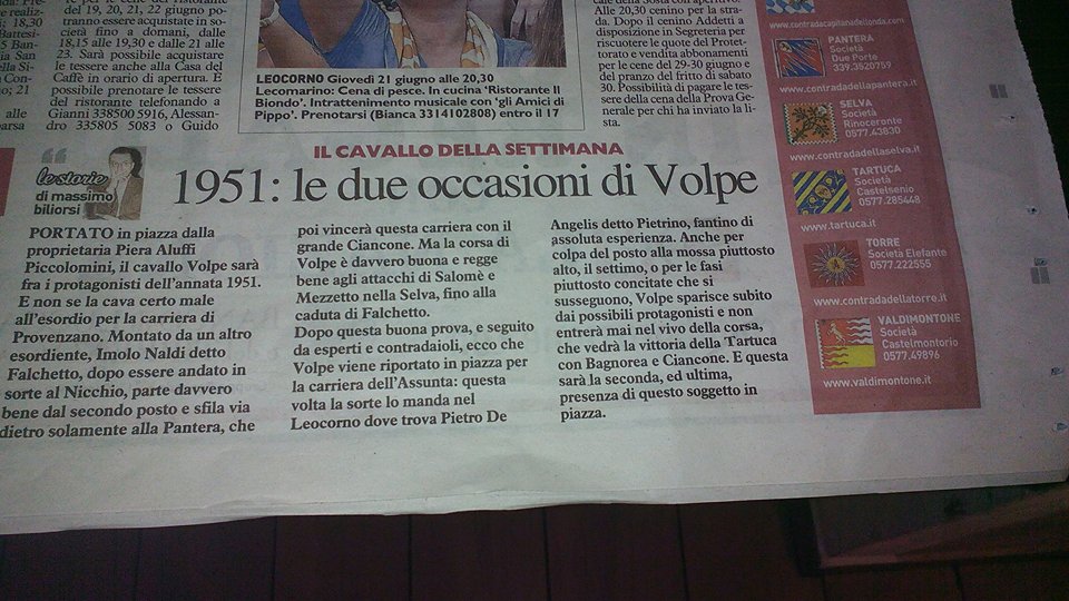 Palio di Siena, Il Cavallo della Settimana,1951: Le due occasioni di Volpe