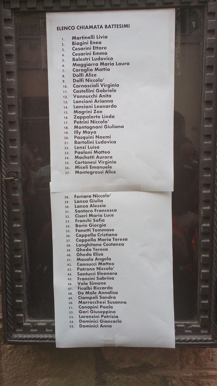 Il primo battesimo contradaiolo si è svolto l’11 settembre 1949. Quell’anno, così come nei successivi, l’appuntamento si è ripetuto più volte. A partire dagli inizi degli anni Sessanta fu deciso che il rito dovesse essere celebrato in una data unica: il 29 giugno.
