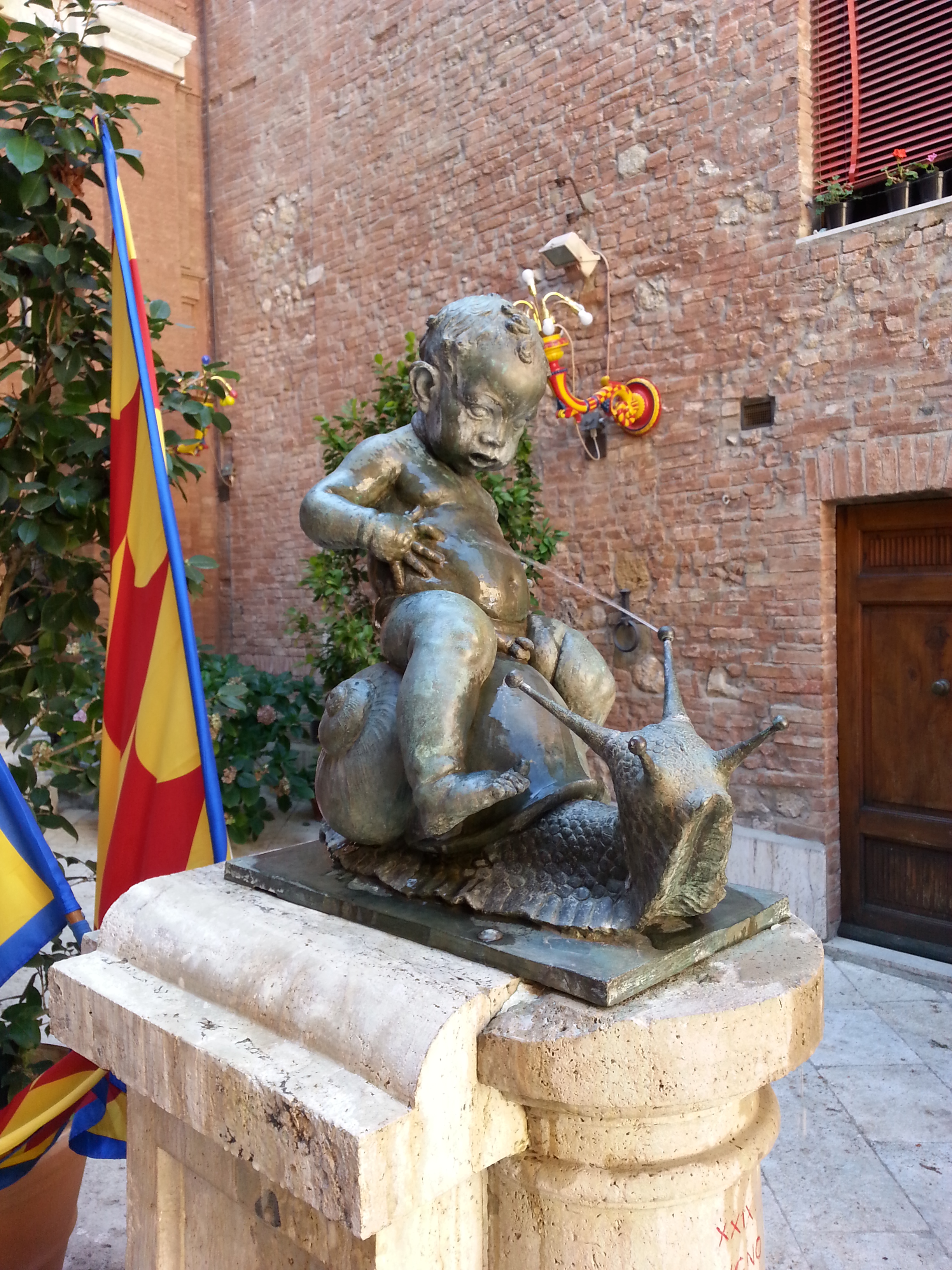 <<Nel nome del Popolo di San Marco, e con il beneplacito dell’Eccellentissimo Seggio, io, Priore di questa gloriosa Contrada, ti consacro Chiocciolino vita natural durante. Le cristalline acque di questa fonte infonderanno a te, pargolo, la fede dei nostri avi, e nello stesso tempo, ti impongono il dovere di tramandarla alle generazioni future.>>