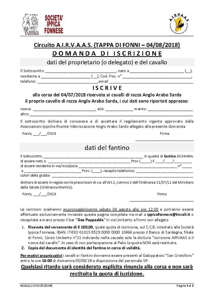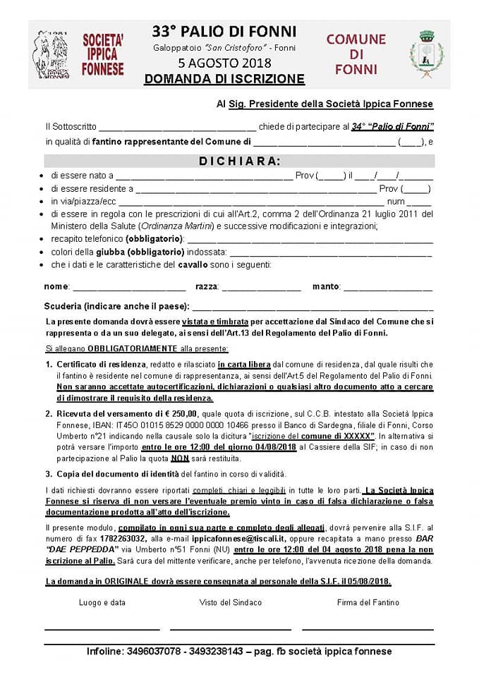 Ecco per voi il manifesto del 34° Palio di Fonni e la Modulistica già scaricata per voi per iscrivere i cavalli e i fantini al palio di Fonni e al Palio del Cirucito A.I.R.V.A.A.S.