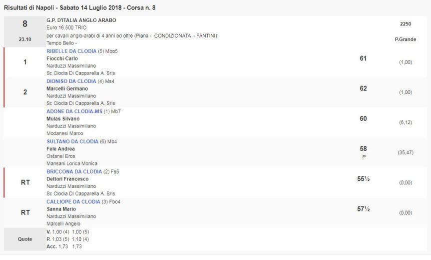 Ippica, Napoli: Risultati 6^ e 8^ Corsa, Vincono Vanadio da Clodia e Ribelle da Clodia Questi i risultati 6^ Corsa, Premio Derby italiano Anglo-Arabo Questi i risultati 8^ corsa, Gran Premio d’Italia Anglo-Arabo Condividi sul web: Fai clic per condividere su Facebook (Si apre in una nuova finestra) Facebook Fai clic per condividere su WhatsApp (Si apre in una nuova finestra) WhatsApp Fai clic per condividere su Telegram (Si apre in una nuova finestra) Telegram Fai clic per condividere su X (Si apre in una nuova finestra) X Fai clic qui per stampare (Si apre in una nuova finestra) Stampa Fai clic per inviare un link a un amico via e-mail (Si apre in una nuova finestra) E-mail Mi piace Caricamento... Correlati