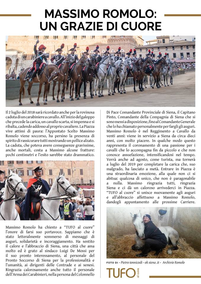 Palio di Siena: Il Carabinieri ferito dal cavallo ringrazia Siena e i Senesi Massimo Romolo ha offerto a “TUFO al cuore” l’onore di farsi suo portavoce. Qui sotto l’articolo per voi Fonte: https://www.facebook.com/tufoalcuore Condividi sul web: Fai clic per condividere su Facebook (Si apre in una nuova finestra) Facebook Fai clic per condividere su WhatsApp (Si apre in una nuova finestra) WhatsApp Fai clic per condividere su Telegram (Si apre in una nuova finestra) Telegram Fai clic per condividere su X (Si apre in una nuova finestra) X Fai clic qui per stampare (Si apre in una nuova finestra) Stampa Fai clic per inviare un link a un amico via e-mail (Si apre in una nuova finestra) E-mail Mi piace Caricamento... Correlati