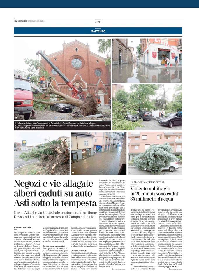 Asti: Articolo di giornale “La Stampa” sul nubifragio di ieri 21/07 Ecco l’articolo odierno dell’edizione astigiana del giornale “La Stampa” su quanto accaduto ieri ad Asti Condividi sul web: Fai clic per condividere su Facebook (Si apre in una nuova finestra) Facebook Fai clic per condividere su WhatsApp (Si apre in una nuova finestra) WhatsApp Fai clic per condividere su Telegram (Si apre in una nuova finestra) Telegram Fai clic per condividere su X (Si apre in una nuova finestra) X Fai clic qui per stampare (Si apre in una nuova finestra) Stampa Fai clic per inviare un link a un amico via e-mail (Si apre in una nuova finestra) E-mail Mi piace Caricamento... Correlati