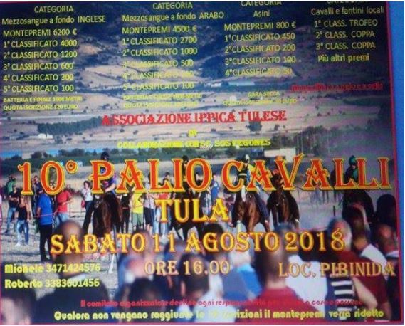 Palii di Sardegna, Tula ( SS ): 11/08 Palio di Tula Il Palio di Tula ( SS ) categoria mezzosangue che doveva essere corso il 04/08, è stato posticipato al giorno: Sabato 11/08 Questo Palio si dividerà in due categorie: Fondo Inglese Fondo Arabo Condividi sul web: Fai clic per condividere su Facebook (Si apre in una nuova finestra) Facebook Fai clic per condividere su WhatsApp (Si apre in una nuova finestra) WhatsApp Fai clic per condividere su Telegram (Si apre in una nuova finestra) Telegram Fai clic per condividere su X (Si apre in una nuova finestra) X Fai clic qui per stampare (Si apre in una nuova finestra) Stampa Fai clic per inviare un link a un amico via e-mail (Si apre in una nuova finestra) E-mail Mi piace Caricamento... Correlati