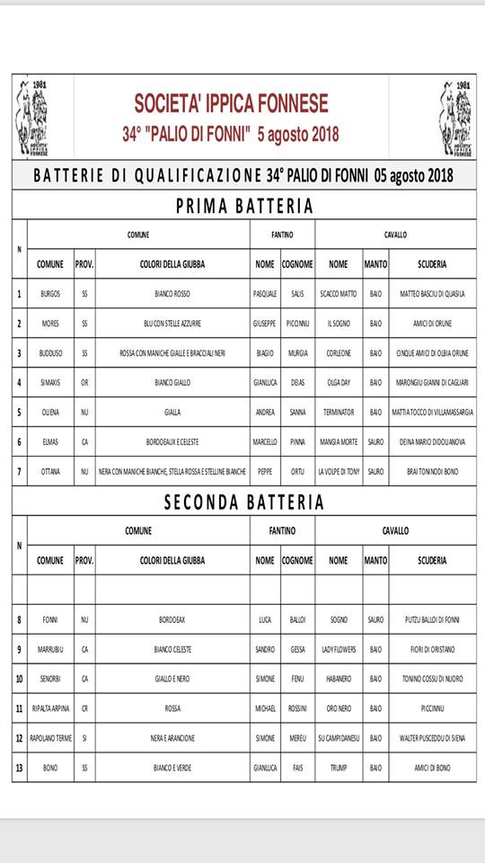 Ecco la Batterie di Domani 05/08 del 34° Palio di Fonni. Che vinca il migliore….buon palio a tutti!!!!