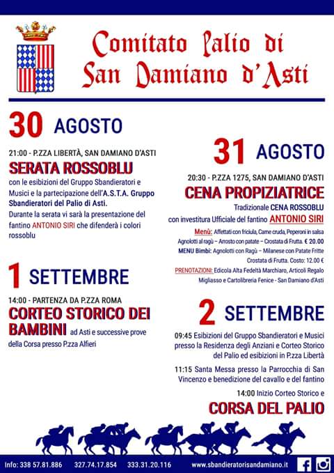 Palio di Asti, Comitato Palio San Damiano d’Asti: 30/08-02/09 Settimana Palio 2018 30-31 agosto e 2 settembre Vi aspettiamo a San Damiano ai festeggiamenti del Palio 2018. Intervenite numerosi, vi aspettiamo a San Damiano d’Asti!! Massi Condividi sul web: Fai clic per condividere su Facebook (Si apre in una nuova finestra) Facebook Fai clic per condividere su WhatsApp (Si apre in una nuova finestra) WhatsApp Fai clic per condividere su Telegram (Si apre in una nuova finestra) Telegram Fai clic per condividere su X (Si apre in una nuova finestra) X Fai clic qui per stampare (Si apre in una nuova finestra) Stampa Fai clic per inviare un link a un amico via e-mail (Si apre in una nuova finestra) E-mail Mi piace Caricamento... Correlati