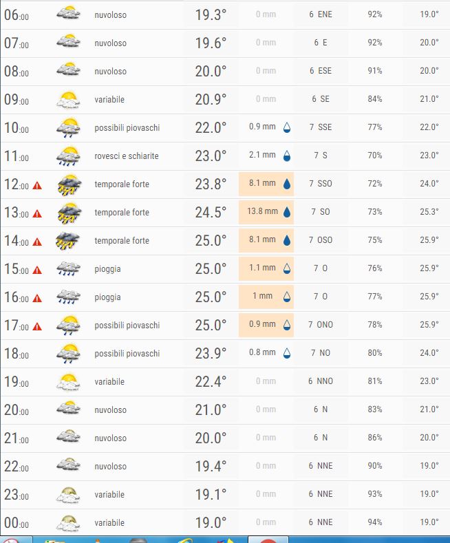 Come sempre in questi casi ogni modello vede un evoluzione e una localizzazione dei picchi differente e pertanto diventa molto difficile poter essere più precisi sopratutto se si pretende di localizzare ogni singolo nucleo temporalesco.