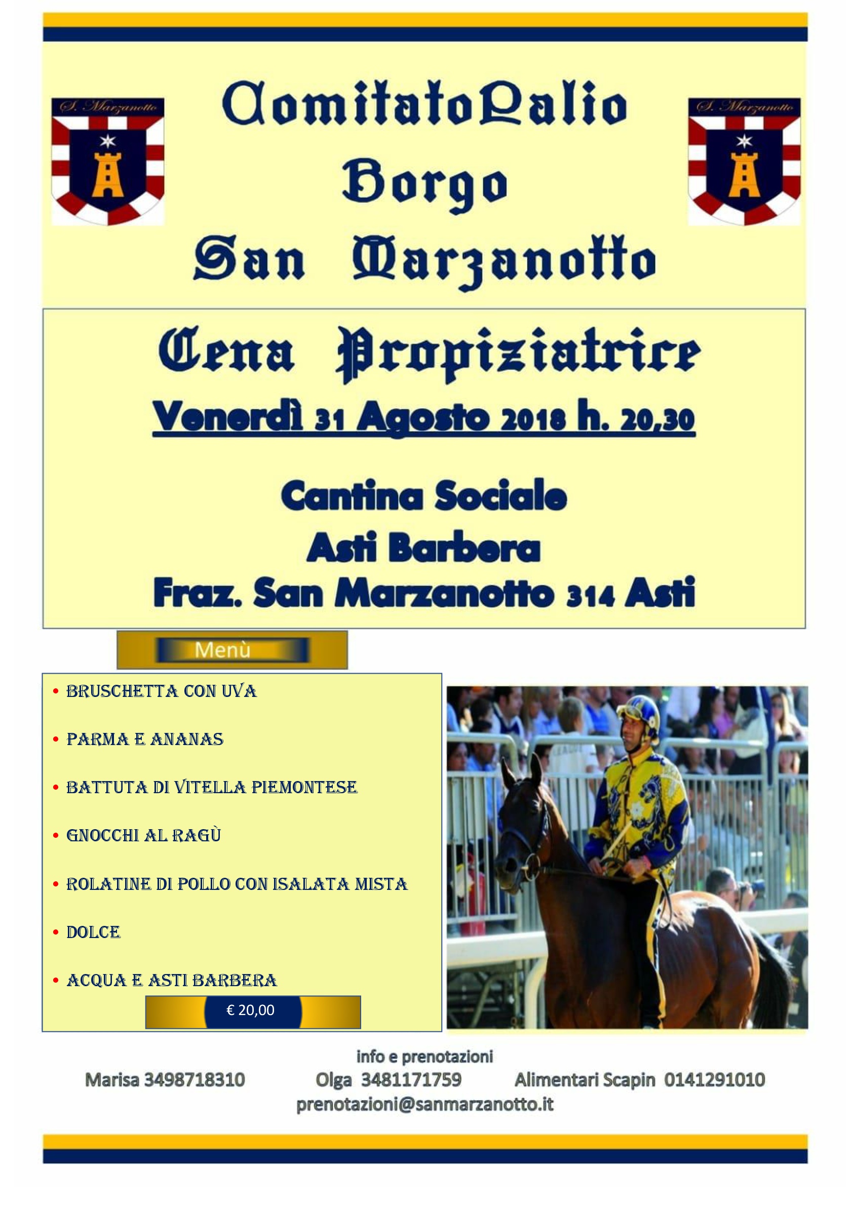 Ecco il manifesto con menù e numeri per info della Cena Propiziatoria 2018