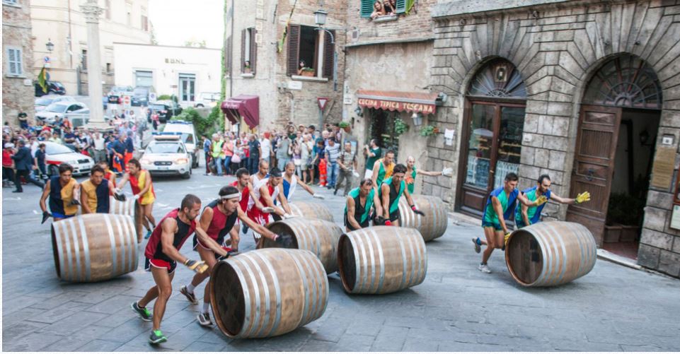 La lunga giornata conclusiva della settimana degli eventi del Bravìo delle Botti è incentrata sulla gara tra le otto contrade, con gli spingitori che percorreranno le vie del centro storico di Montepulciano spingendo la rispettiva botte fino al sagrato del Duomo.