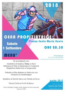 A poche ore dall’inizio dell’attesissima Settimana del Palio, proponiamo di seguito il riepilogo di tutte le cene propiziatorie organizzate dai 21 Borghi, Rioni e Comuni partecipanti al Palio.