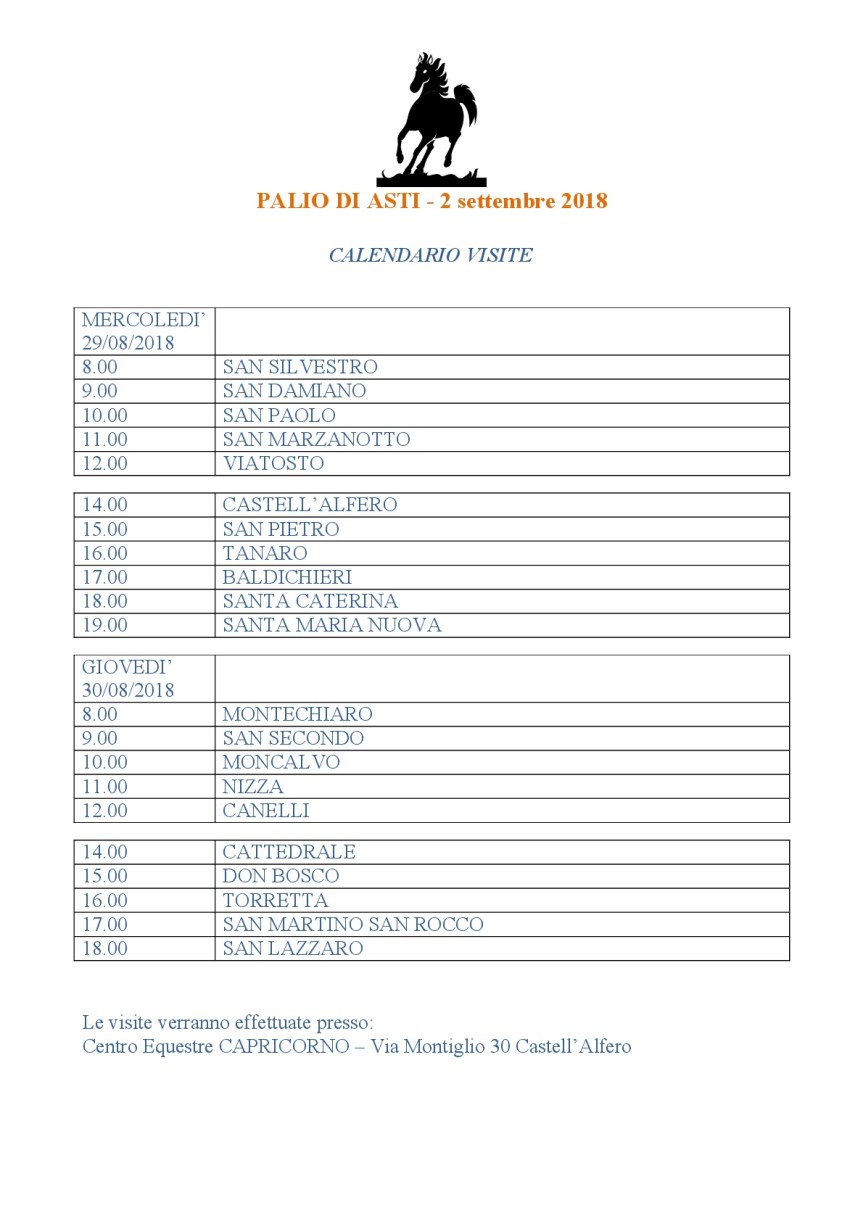 Qua sotto il dettaglio del giorno delle visite e degli orari Contrada per Contrada