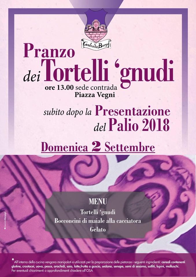 Palio di Castel del Piano, Contrada Borgo: 02/09 Pranzo dei Tortelli ‘Gnudi Domenica 2 agosto dopo la Presentazione del Palio 2018 il tradizionale pranzo dei tortelli ‘gnudi! Massi Condividi sul web: Fai clic per condividere su Facebook (Si apre in una nuova finestra) Facebook Fai clic per condividere su WhatsApp (Si apre in una nuova finestra) WhatsApp Fai clic per condividere su Telegram (Si apre in una nuova finestra) Telegram Fai clic per condividere su X (Si apre in una nuova finestra) X Fai clic qui per stampare (Si apre in una nuova finestra) Stampa Fai clic per inviare un link a un amico via e-mail (Si apre in una nuova finestra) E-mail Mi piace Caricamento... Correlati