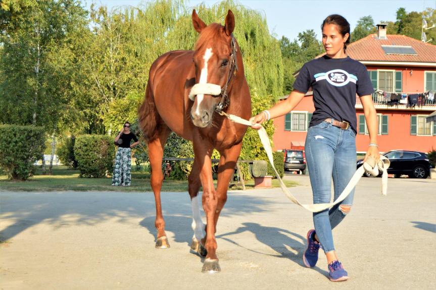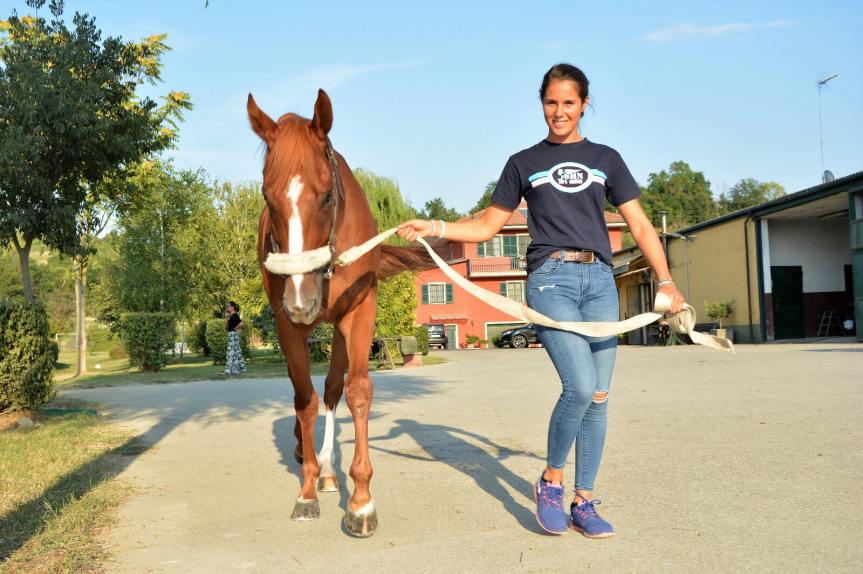 Mi sono appena giunte le foto della barbaresca Pieranna Bramafarina che passeggia il cavallo della Scuderia Bruschelli Voulture.