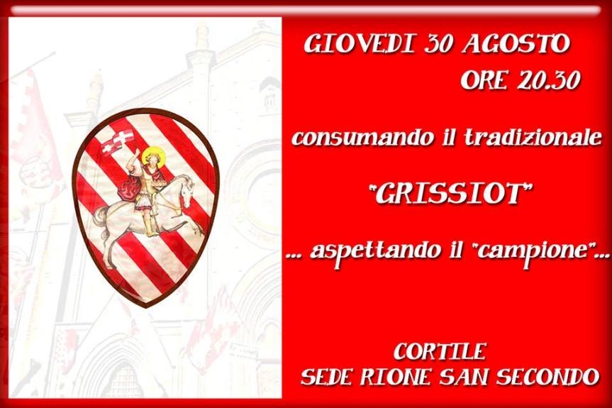 Palio di Asti, Rione San Secondo: 30/08 Serata consumando il tradizionale “Grissiot”