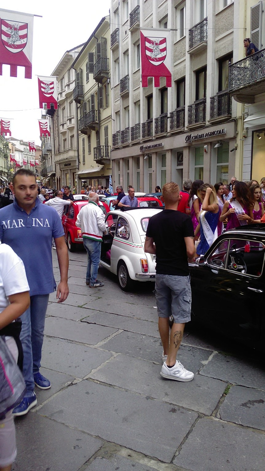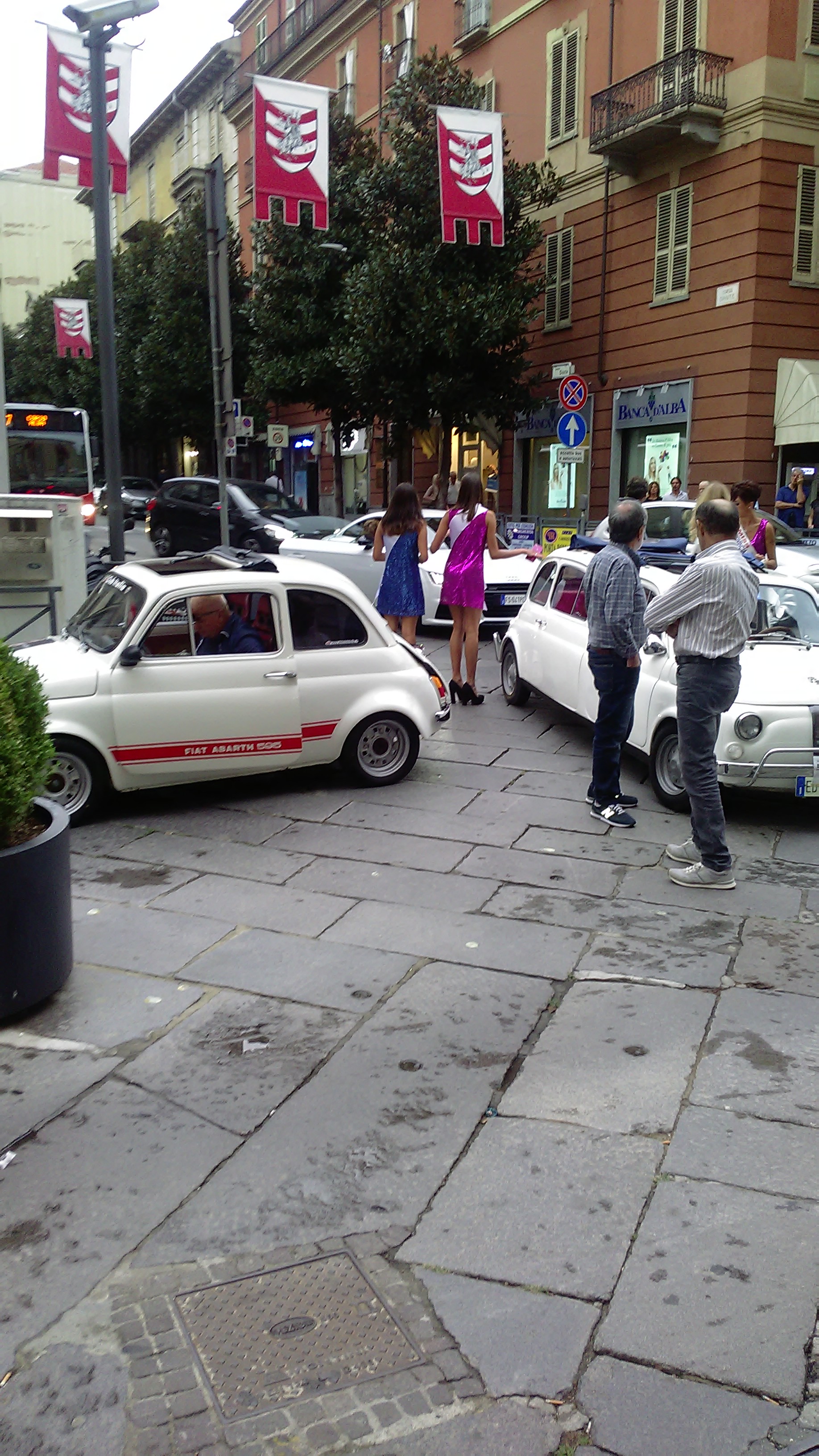 Sono entrate in Corso Alfieri a sprint battuto a colpi di clacson di vecchie 500 da collezione le ragazze partecipanti al Concorso Miss Italia fra lo stupore dei passanti, dei contradaioli e degli addetti ai lavori delle 21 Contrade.