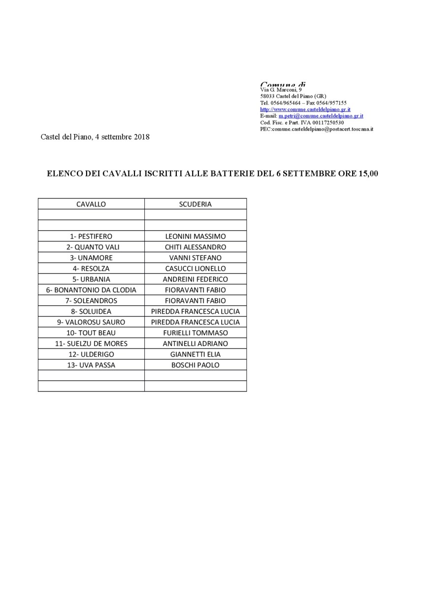 Sono 13 i cavalli iscritti alla Tratta del Palio che si terrà Giovedì 06/09. Le batterie di Selezione inizieranno alle ore 15.
