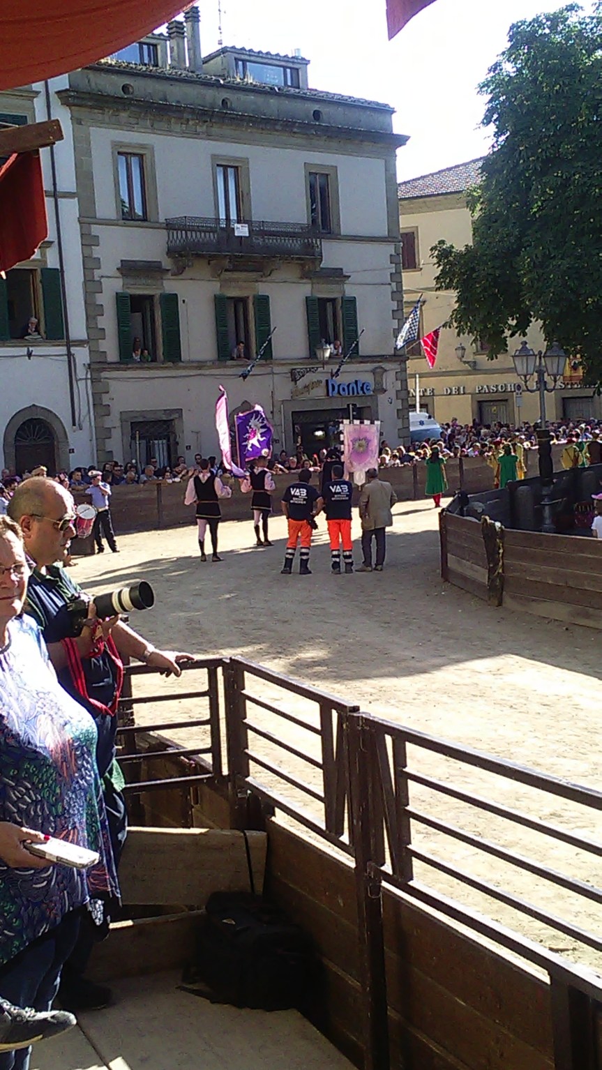 Si sta svolgendo in questi minuti la Sfilata Storica delle Contrade sulla Pista del Palio. Sfilata molto bella e suggestiva, al termine della quale, circa alle 18, entreranno in Pista cavalli e fantini per la disputa del Palio.