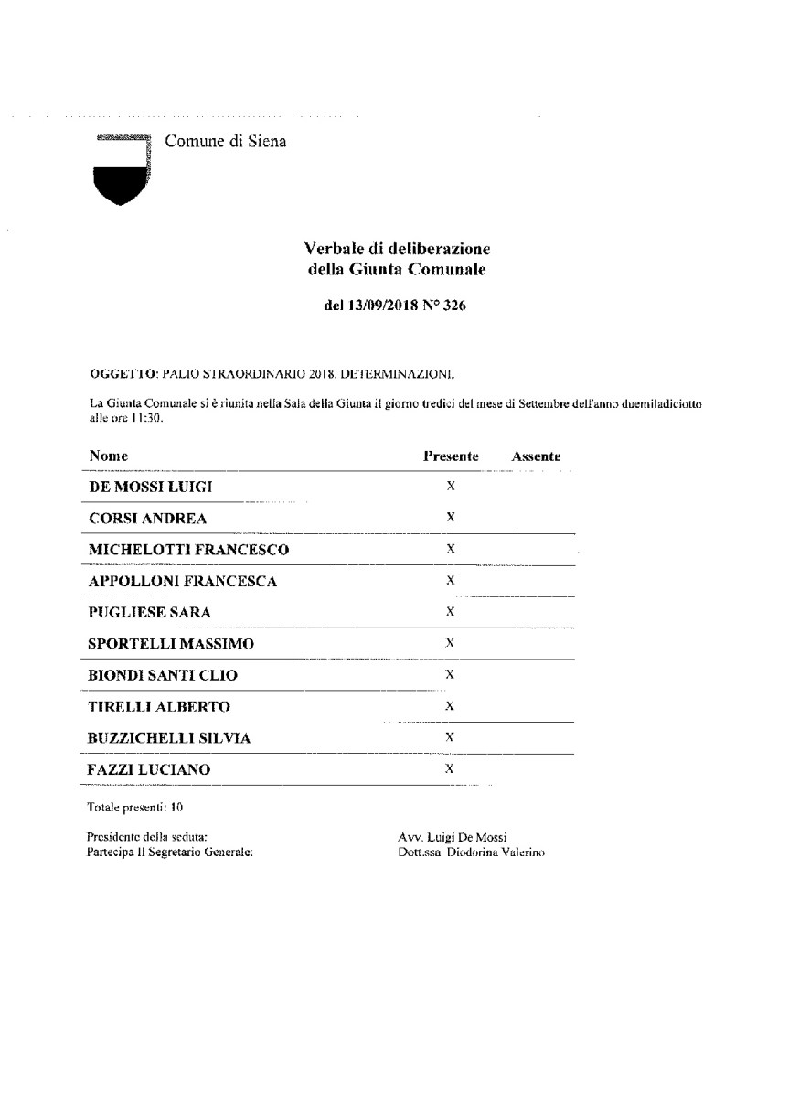 Palio di Siena, Palio Straordinario: Ecco il Verbale della Giunta Comunale di ieri 12/09