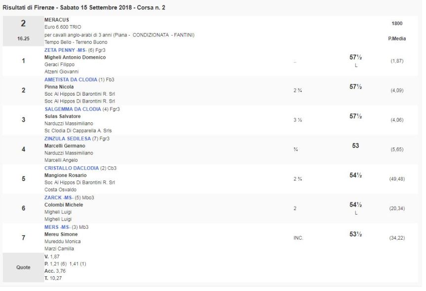 Ecco i risultati della Seconda Corsa, Premio Meracus