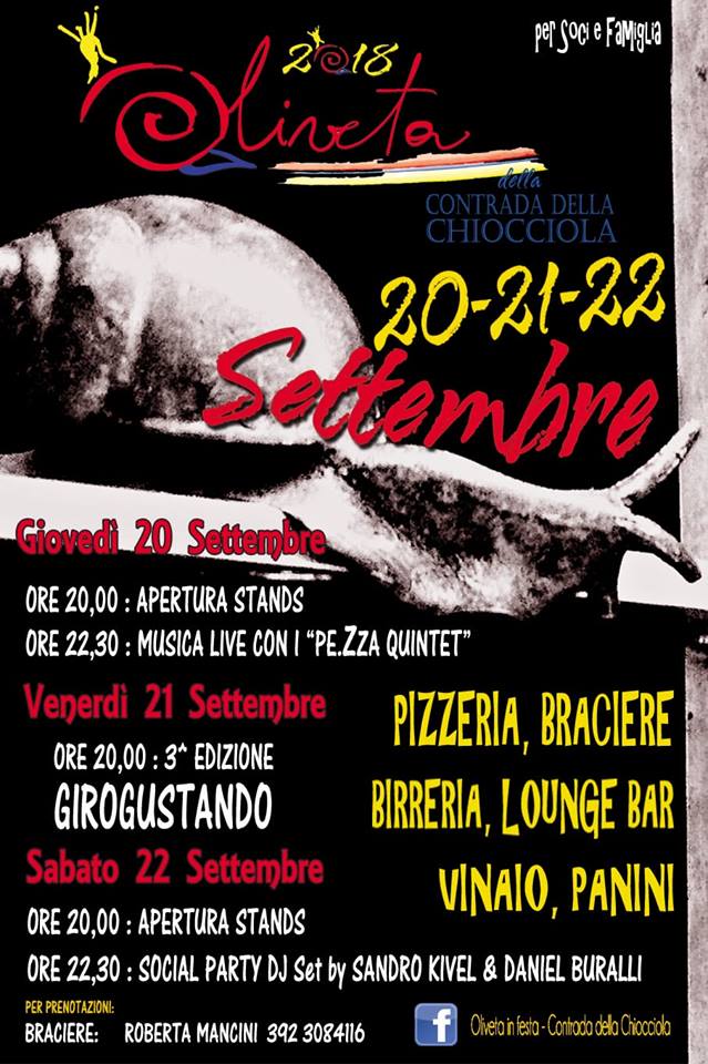 Ecco qua il Programma delle tre serate di Oliveta Settembre 2018. Qua tutte le info per partecipare alle serate