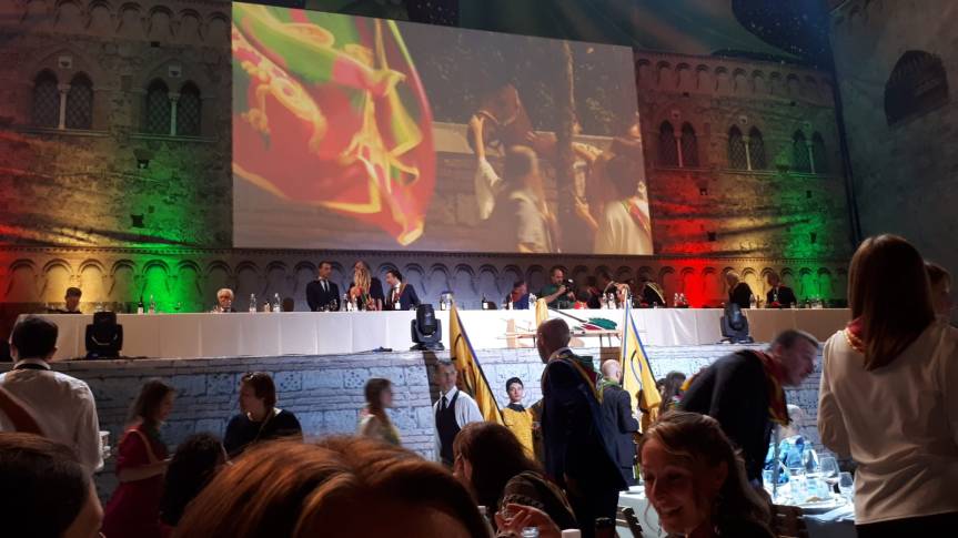 I canti e la gioia rivolti nei confronti di Capitan Miraldi, i suoi tenenti, Andre Mari detto “Brio” e del cavallo Rocco Nice, il quale ha un paddock di tutto rispetto all’interno della cena.