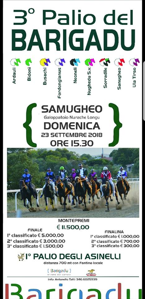 Si correrà domenica 23 settembre a Samugheo il palio del Barigadu, giunto alla terza edizione. Ad ospitarlo il galoppatoio Nurache Loungu.