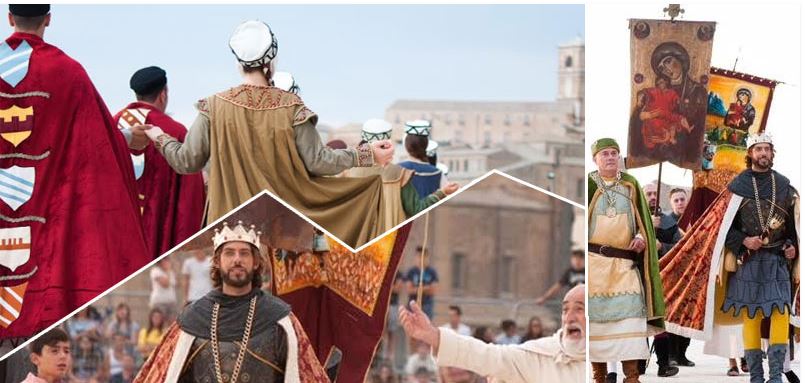 Venerdì 28 e sabato 29 settembre, in occasione del “World Tourism Event for Unesco Sites” che si svolgerà a Siena, una delegazione del Palio dei Normanni di Piazza Armerina sfilerà in corteo per le vie della città del più noto Palio al mondo, Siena. Il corteo che rievoca le gesta di Ruggero d’Altavilla verrà accolto dall’amministrazione comunale di Siena alla quale sarà consegnato, in segno di incontro e stima reciproca, il vessillo di Maria Santissima delle Vittorie. Proprio la figura di Maria è un importante trait d’union tra le due manifestazioni: a Piazza Armerina il Palio si svolge in onore di Maria Santissima delle Vittorie, festeggiata il 15 agosto, giorno dell’Assunzione, così come a Siena il Palio di agosto è in onore dell’Assunta.