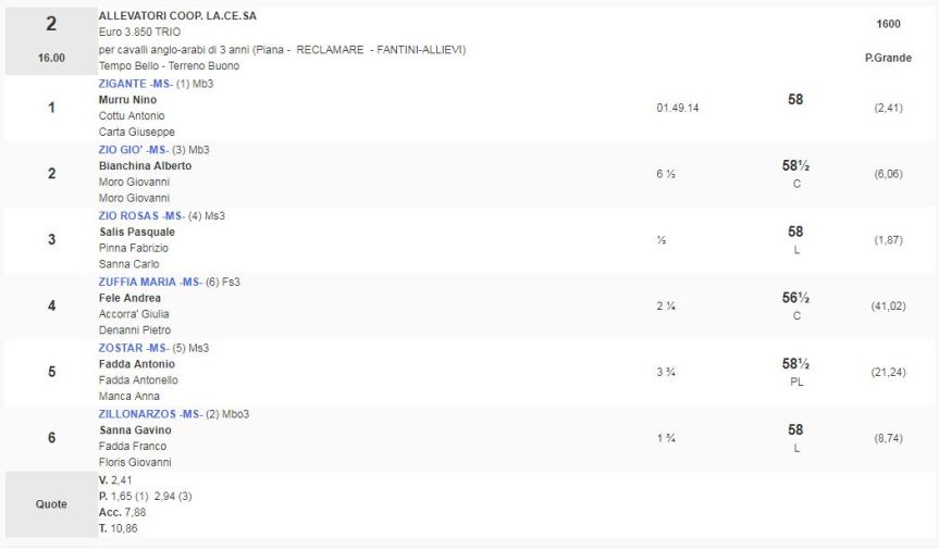 Ippica, Chilivani: Risultati 2^ e 5^ Corsa, Vincono Zaigante e Unico de Aighenta Risultati 2^ Corsa, Premio Cooperativa LA.CE.SA. Risultati 5^ Corsa, Premio 18 OMNIUM ANGLO-ARABO Massi Condividi sul web: Fai clic per condividere su Facebook (Si apre in una nuova finestra) Facebook Fai clic per condividere su WhatsApp (Si apre in una nuova finestra) WhatsApp Fai clic per condividere su Telegram (Si apre in una nuova finestra) Telegram Fai clic per condividere su X (Si apre in una nuova finestra) X Fai clic qui per stampare (Si apre in una nuova finestra) Stampa Fai clic per inviare un link a un amico via e-mail (Si apre in una nuova finestra) E-mail Mi piace Caricamento... Correlati