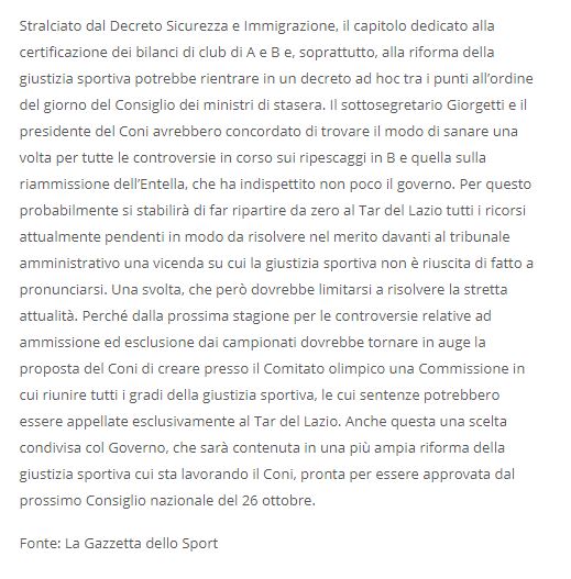 Ecco l’articolo, apparso sulla Gazzetta dello Sport , e ripreso sul sito del Siena Club Fedelissimi, finalmente il Governo si muove. Entrando nel merito della questione, dove a livello sportivo abbiamo fatto la più grossa figura di m…a di tutta la storia sportiva italiana.