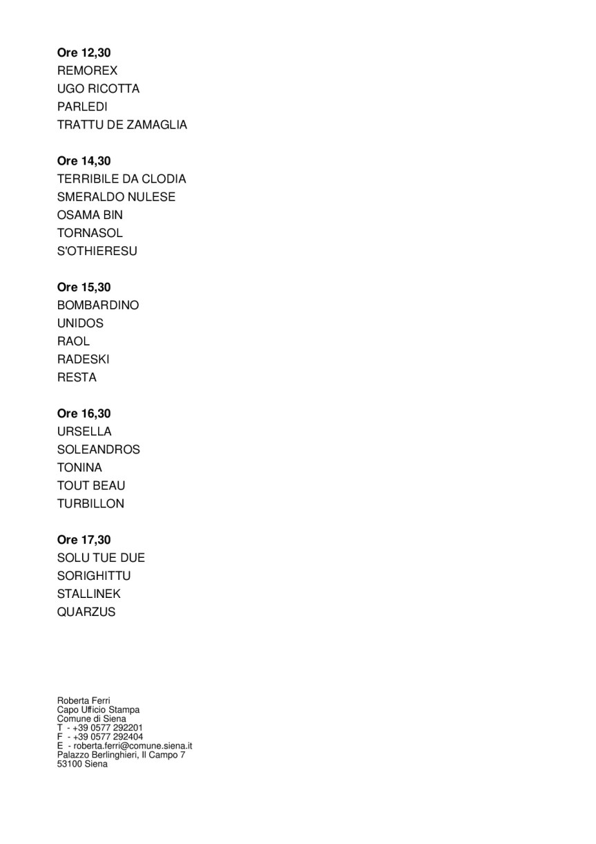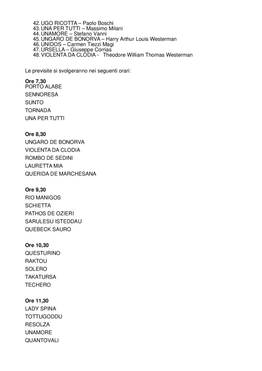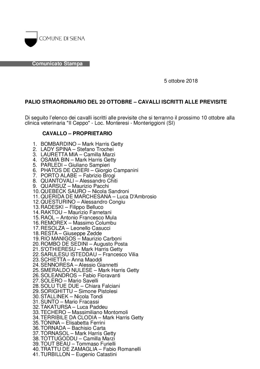 Di seguito l’elenco dei cavalli iscritti alle previsite che si terranno il prossimo 10 ottobre alla clinica veterinaria “Il Ceppo” – Loc. Monteresi – Monteriggioni (SI)
