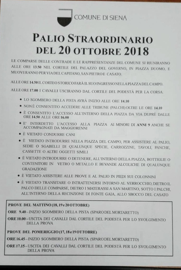 Ecco tutti gli orari del Palio Straordinario, dal 17/10 al 20/10