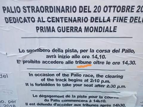 Ecco una veloce guida, made in Massi Lo Sa, degli orari di questo Palio Straordinario
