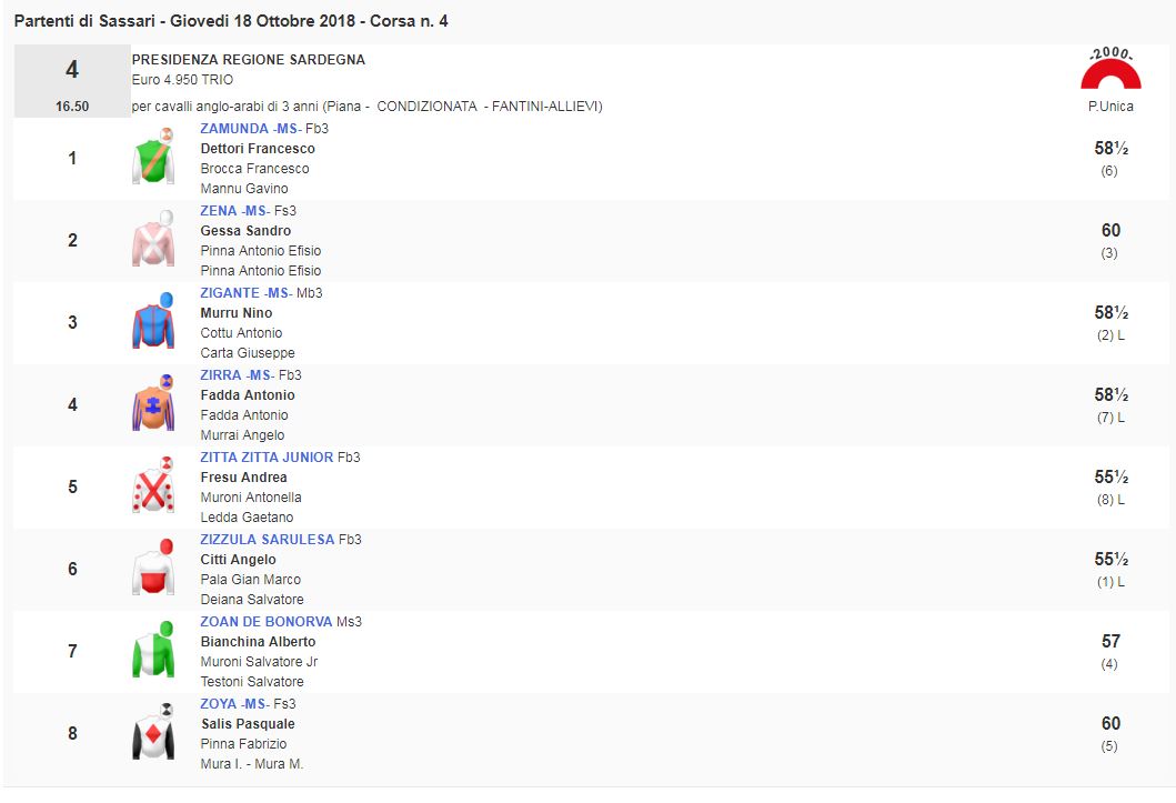 Partenti 4^ Corsa Premio Presidenza Regione Sardegna