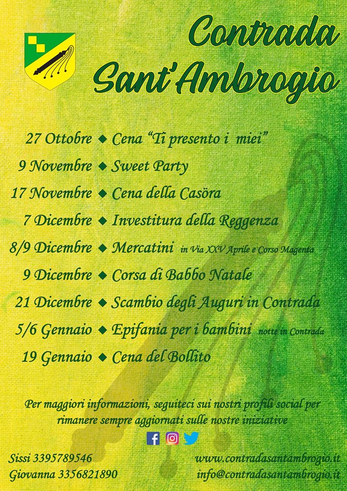 Palio di Legnano, Contrada Sanr’Ambrogio: Gli eventi dal 27/10/2018 al 19/01/2019 Iniziamo la settimana col botto!💥 Ecco gli eventi Gialloverdi fino a Gennaio! 💛💚 Segnatevi tutto in agenda perché non si può mancare!!🗓 Massi Condividi sul web: Fai clic per condividere su Facebook (Si apre in una nuova finestra) Facebook Fai clic per condividere su WhatsApp (Si apre in una nuova finestra) WhatsApp Fai clic per condividere su Telegram (Si apre in una nuova finestra) Telegram Fai clic per condividere su X (Si apre in una nuova finestra) X Fai clic qui per stampare (Si apre in una nuova finestra) Stampa Fai clic per inviare un link a un amico via e-mail (Si apre in una nuova finestra) E-mail Mi piace Caricamento... Correlati