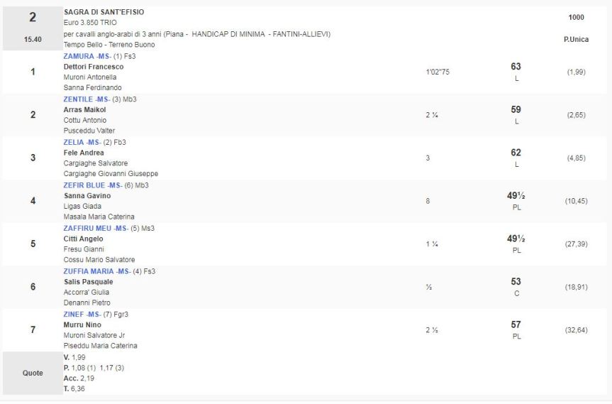 Risultati 2^ Corsa Premio Sagra di Sant’Efisio vinta da Zamura