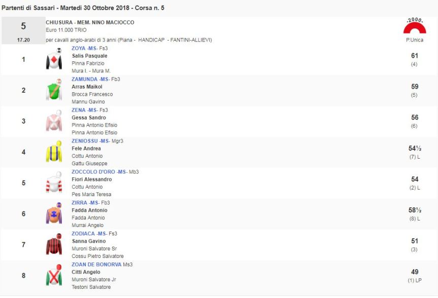 Partenti 5^ Corsa, Premio Chiusura – Mem. Nino Maciocco