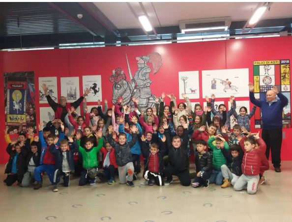 ” Questa mattina, 31 ottobre 2018, gli alunni delle classi II e IV della Scuola Primaria “Cavour” di Asti si sono divertiti e hanno conosciuto il maestro Antonio Guarene che con leggerezza, qualità delle belle persone, umorismo e simpatia ha giocato con gli alunni rendendo la visita alla mostra ” In punta di matita…2″ davvero interattiva, assai piacevole e carica di ricordi da portare con se’.