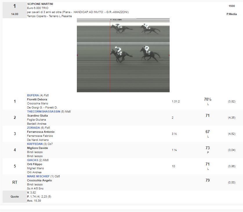 1^ Corsa Premio Scipione Martini vinta da Bufera